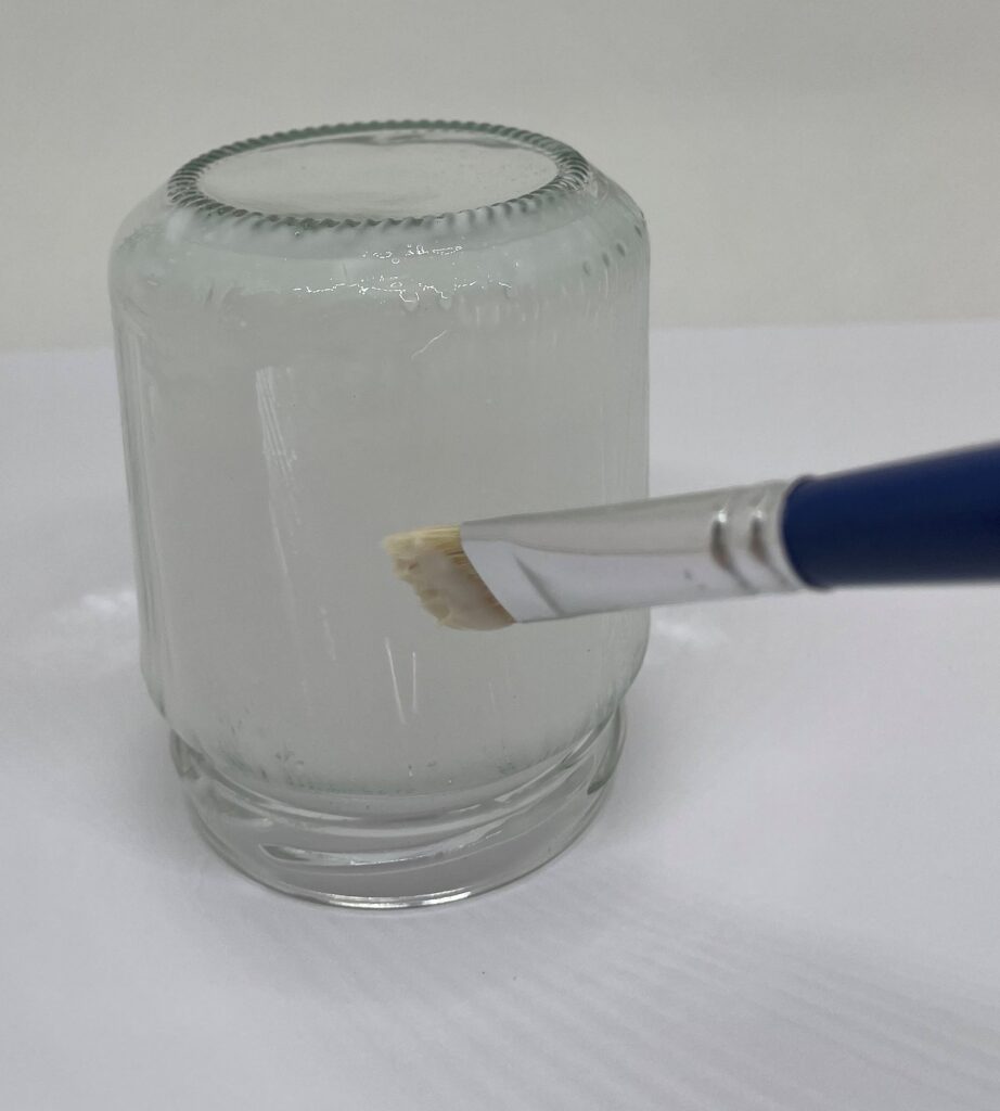 A l'aide d'un pinceau enduire le pot en verre de colle blanche en fine couche.