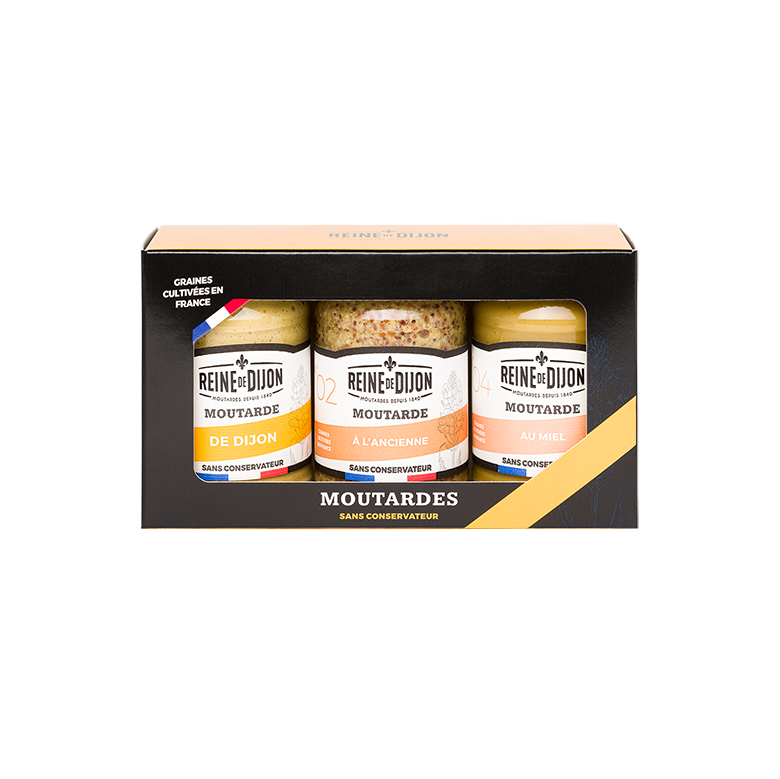 Reine de Dijon, fabricant de moutardes aux graines 100% françaises, porte haut les couleurs de la Bourgogne à travers le monde entier.