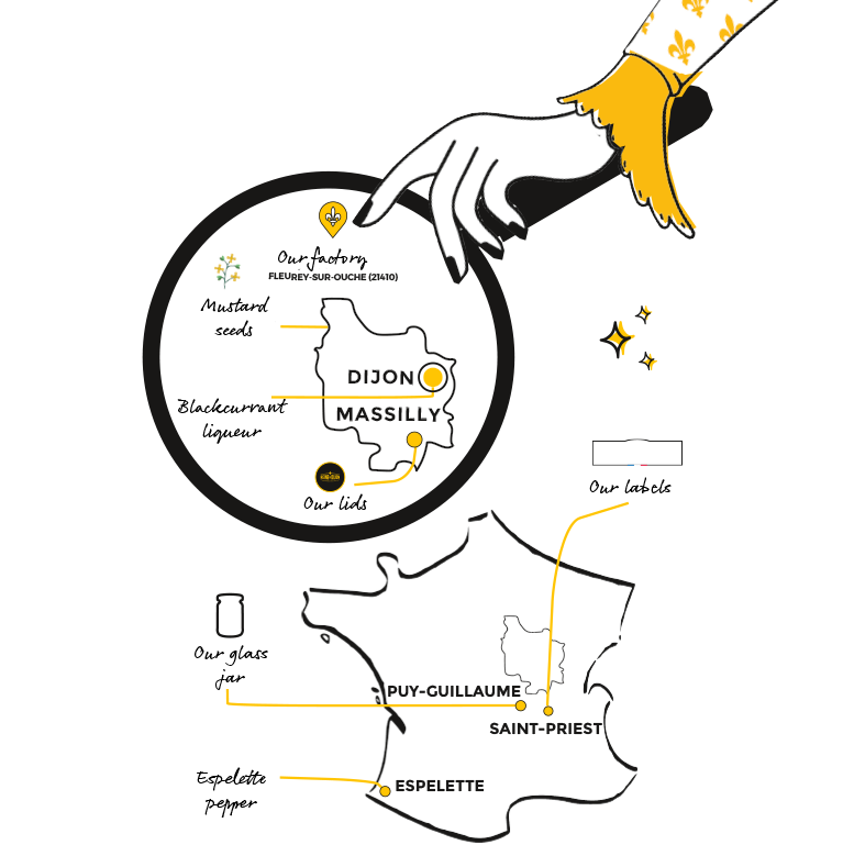 Reine de Dijon, fabricant de moutardes aux graines 100% françaises, porte haut les couleurs de la Bourgogne à travers le monde entier.
